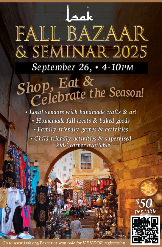 Fall Bazaar & Seminar 2025 Date: Friday, September 26th, 2025, 4:00 - 10:00 PM Location: Islamic Society of Akron and Kent, 152 E Steels Corners Rd, Cuyahoga Falls, OH 44224 🎉 Shop, […]