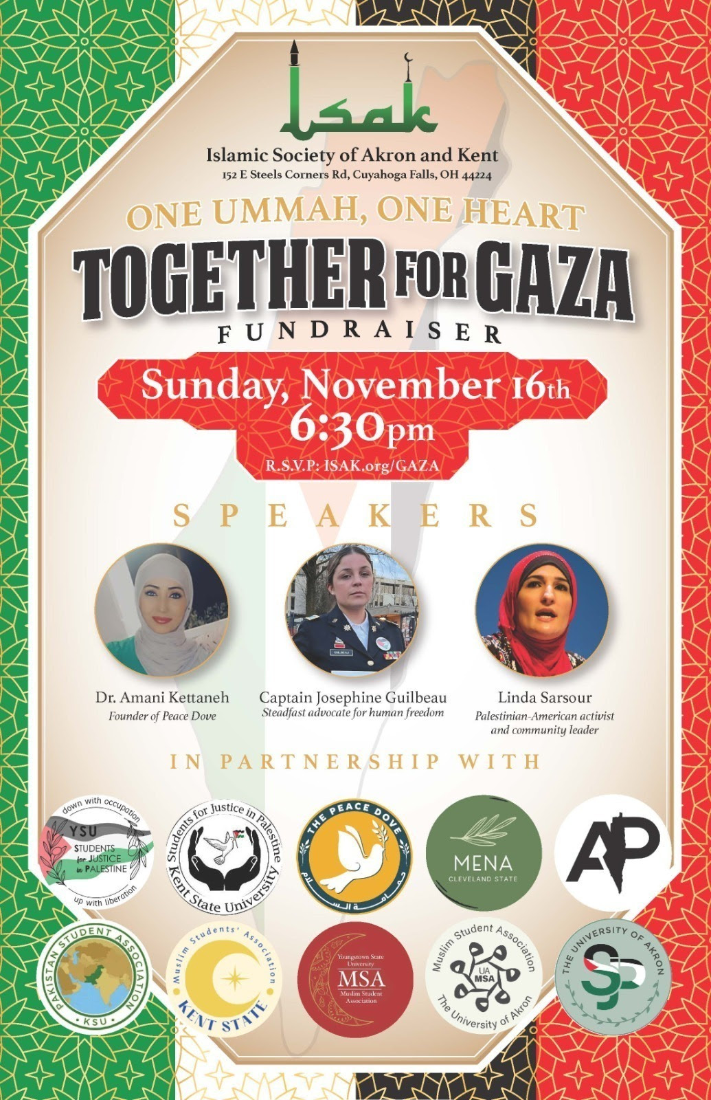 Join us at the Islamic Society of Akron and Kent (ISAK) for a powerful evening of solidarity, reflection, and action for Gaza.