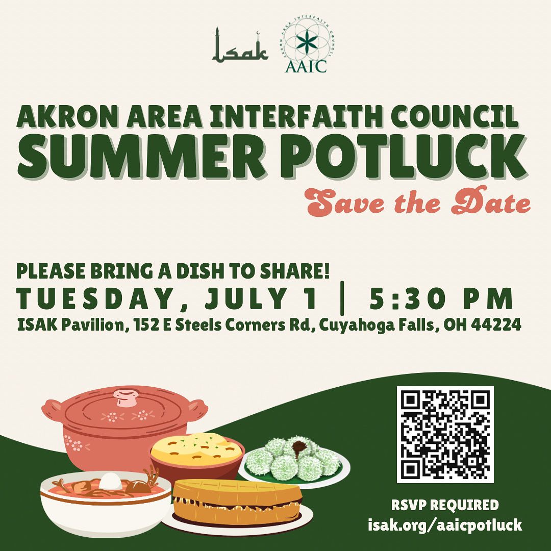 ISAK Pavilion 152 E Steels Corners Rd, Cuyahoga Falls, OHAkron Area Interfaith Council Summer Potluck Date: Tuesday, July 1st, 5:30 PM Location: ISAK Pavilion, 152 E Steels Corners Rd, Cuyahoga Falls, OH 44224 Registration: isak.org/aaicpotluck RSVP required. Join the Akron Area Interfaith Council (AAIC) Summer […]
