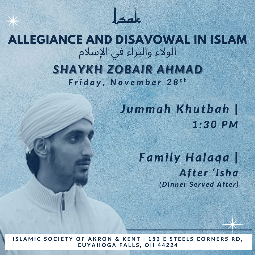 ISAK Prayer Hall 152 E. Steels Corners Rd, Cuyahoga Falls, OHFriday Programming Date: Friday, October 31st, 2025 Jummah Khutbah - Mercy in Islam: From Righteous Deeds to Boundless Forgiveness - 1:30 PM Family Halaqa - After Maghrib (Dinner Served After) Location: Islamic Society of Akron […]