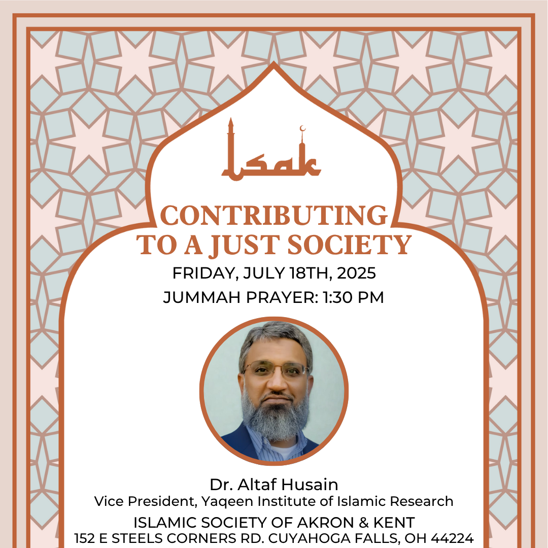 ISAK Prayer Hall 152 E. Steels Corners Rd, Cuyahoga Falls, OHContributing to a Just Society Dr. Altaf Husain | Vice President, Yaqeen Institute of Islamic Research Date: Friday, July 18th, 2025 Jummah Khutbah - 1:30 PM Location: Islamic Society of Akron and […]